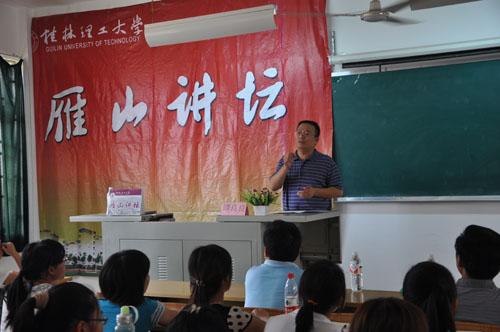 2011年9月13日下午4:30,受学校邀请,南宁建宁水务投资集团有限责任公司党委书记、董事长谭良良高级工程师在雁山校区05201教室为给水排水工程及相关专业同学做了一场报告,开始了本学期我校雁山讲坛的第一讲。讲座由环境科学与工程学院院长王敦球教授主持。