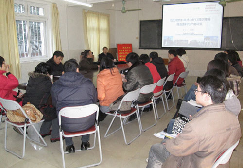 应学校邀请,博士生导师、华南理工大学环境科学与工程学院副院长胡勇有教授来校讲学,2011年1月12日下午,胡勇有教授在环境科学与工程学院会议室做了题为《微生物燃料电池(MFC)同步降解偶氮染料与产电研究》专题报告,相关研究领域的老师和研究生参加了报告会,会后胡勇有教授与环境科学与工程学院的老师进行了国家自然科学基金申报经验座谈会,环境科学与工程学院院长王敦球教授主持了报告会和座谈会。