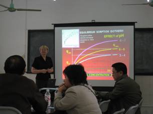 Chmielewská教授在教十二楼环境科学与工程学院会议室为广大师生做了题为“Past, present and prospects of zeolitic materials” (沸石材料的过去,现状及前景)的学术报告。Chmielewská的报告详细介绍了沸石材料的产地,表面特性,以及在环境保护领域的应用前景。会现场气氛热烈,尤其是她渊博的知识和丰富的实践经验得到与会师生的热烈掌声。Chmielewská教授主要从事环境材料化学与固体废弃物管理方面的研究工作。