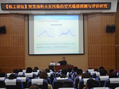 会上,陈志莉教授先向同学们提出了一个问题:“遥感技术适用于军事,可适用于民用方面吗?”答案是肯定的,在民用方面,遥感技术广泛用于地球资源普查、植被分类、土地利用规划、农作物病虫害和作物产量调查、环境污染监测、海洋研制、地震监测等方面。接着陈教授介绍燃油火灾的独特性,油料燃烧热释放、燃油火焰的光谱特性、航天遥感探测溢油的探测原理、能力及应用状况,分析了未来溢油遥感技术的发展趋势。同学们认真聆听,思索总结,会后,大家积极踊跃的跟陈志莉教授进行交流。