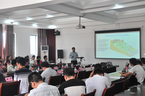 2018年9月18日上午,柬埔寨理工学院水利水资源学院院长Ly Sarann博士、Chhuon Kong博士、Heng Sokchhay博士、Doung Ratha博士和Sith Ratino博士一行五人来到学校,在雁山校区教九楼12407会议室为我院研究生做了题为“Improved water governance under climate change - Stung Chreybak” 、 “Application of HEC-RAS for Unsteady Flow Analysis and Sediment Transport Analysis on Hydropower Reservoir Project in Prek Te River basin, Cambodia ”、“Concept for quantifying urban flood responses to garbage blockage in urban drainage”、 “Sanitation Situation and Market Potential for Toilet Promotion and Fecal Sludge Management in 6 provinces around Tonle Sap Lake ”和“Urban flood conditions in Phnom Penh: the citizen’s experiences”的5个报告。