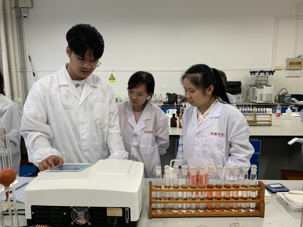 2020年10月22日,为了落实《环境工程专业本科人才培养方案》,切实提高环境工程专业学生的培养质量,加快一流本科教育建设,我院特邀请桂林生态环境监测中心黄晓蓉、何志两位专家来我院环境工程中心实验室与《环境监测实践》任课老师进行业务交流,并现场指导了环境工程专业学生的实验,着重强调并示范了操作技能、仪器分析、数据处理及报告撰写的规范性。通过交流,师生都受益良多,尤其学生不仅巩固了《环境监测》的理论知识,并在综合运用所学专业知识解决实际问题方面得到了启发,增强了专业学习的信心。