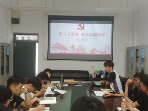 6月20日下午,我院本科生第四党支部在雁山校区翠华楼12414会议室组织开展了主题为“学习习近平新时代中国特色社会主义思想,秉承红船精神”的党课学习。主要学习了我党百年以来的光辉历史及发展历程,本次党课由支部副书记冯致远主持。