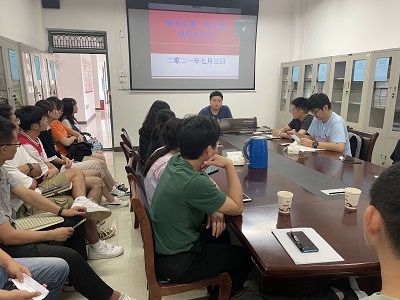 7月3日中午,我院研究生第三党支部全体成员在雁山校区萃华楼12414会议室组织开展党史学习教育专题组织生活会。主要内容为组织党员同志们集中学习建党一百周年庆祝内容、党史学习教育有关教材并组织党员阶段性党史教育发言、深入谈心谈话、开展批评和自我批评、明确整改方向,并提出整改措施。本次组织生活会由支部书记巩宇飞同志主持。