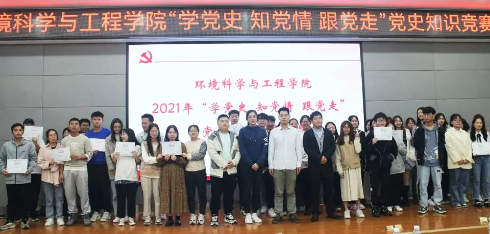 为了巩固深化环境学院“不忘初心、牢记使命”主题教育成果,持续推动我院党史学习教育,鼓励全院师生忆党史、铭党恩、强党性、促党建、肃党纪、正党风,大力度开展党史、党纪、党规及相关知识教育,掀起党的知识学习热潮,同时进一步继承和发扬党的优良传统,进一步体现我院党员先进性和组织凝聚力,10月29日晚7:30,环境学院在地院报告厅举办“学党史,知党情,跟党走”党史知识竞赛决赛。