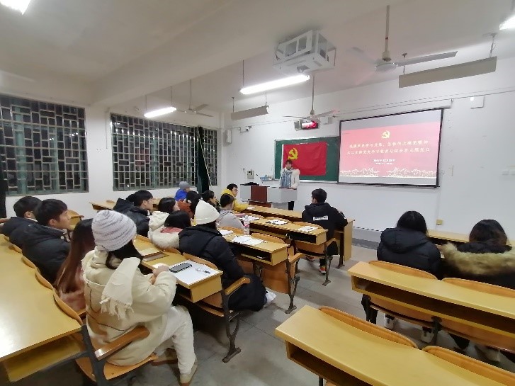 2021年12月29日,环境科学与工程学院本科生第二党支部于5栋302教室开展主题为《巩固拓展党史学习教育成果,弘扬伟大建党精神》的党日活动。本次党日活动由韩菲同志主持,支部部分党员及预备党员积极参与。