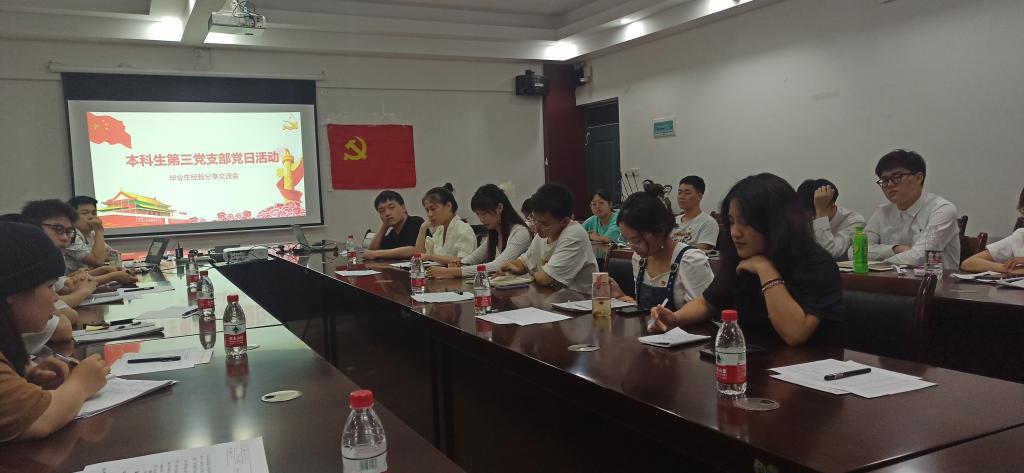 6月9日,我院本科生第三党支部于12407开展党日活动毕业生经验分享交流会,会议由支部副书记韦春伊同志主持,支部书记孙云龙老师及支部全体党员参加本次会议。
