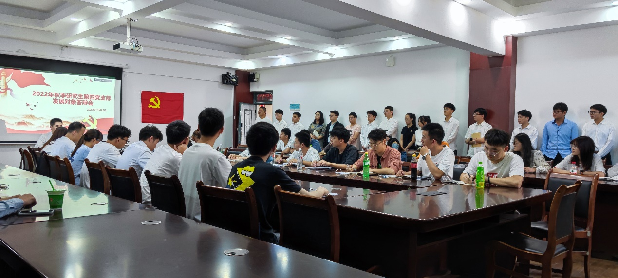为进一步提高党员发展质量,扎实做好我院研究生第四党支部的发展党员工作,按照上级党组织要求,于2022年10月22日,在雁山校区12407会议室召开2022年秋季发展对象答辩会。支部47名党员中有46名党员通过线上线下相结合的方式参加了本次会议,会议由支部副书记刘吉刚主持开展。