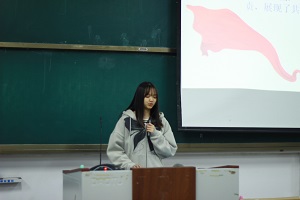 会上,辛月同志从红岩精神的发源地出发,以历史进程为导向,向我们展现了红岩精神的深刻含义:红岩精神是中华民族精神的充分展示和伟大升华,同时也是中国共产党优良传统和作风的体现,是中国共产党精神宝库中独具风采的璀璨明珠。这其中所展现出来的中国共产党人和革命烈士所具有的“出淤泥而不染,同流不合污”的政治品格和善处逆境,宁难不苟的英雄气概也令我们折服。最后,辛月同志强调,我们青年大学生要在弘扬红岩精神中涵养浩然正气,紧跟党的步伐,彰显我们新时代中国青年的独特精神气质。