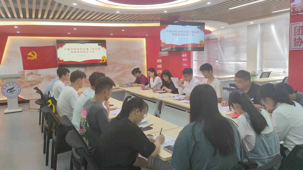 6月9日下午,我院本科生第三党支部在雁山校区明园思政大讲堂召开了预备党员转正大会。本次会议支部书记孙云龙老师以及全体学生正式党员、预备党员到场参会,由支部副书记李茜茜同志主持本次转正大会,大会主要讨论关于周展雄等六名预备党员转正的问题。