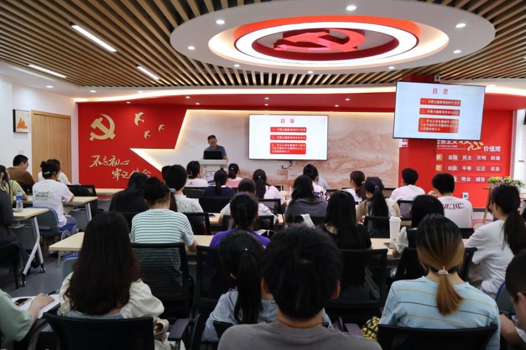 为深入学习贯彻习近平新时代中国特色社会主义思想,2023年6月16日,我院在明园一站式思政大讲堂开展“作为大学生要做学习贯彻习近平新时代中国特色社会主义思想的排头兵”专题党课,由学院党委书记姜子亮主讲,各支部党员及预备党员参加。
