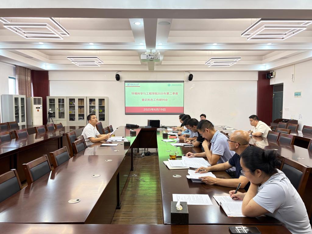 6月19日,环境科学与工程学院在雁山校区12407会议室召开2025年第二季度意识形态工作研判会。学院党委领导班子成员、党政办主任、各党支部书记参加会议。会议由学院党委主要负责人主持。