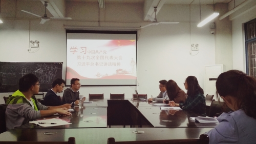 为全面深入学习贯彻党的十九大精神,2017年11月13号下午,我院研究生第二党支部在九栋玻璃房组织开展了学习党的十九大精神会议。会议由党支部书记唐红兵老师主持,全体在校支部党员参与会议。