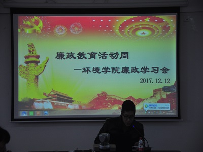 为深入贯彻落实党的十九大精神和习近平总书记关于党风廉政建设和反腐败斗争系列重要讲话精神,进一步强化党员干部“四个意识”,营造风清气正的校园廉洁文化氛围,同时,结合学校举办2017年秋季学期“廉政教育活动周”系列活动的相关要求,12月12日下午,我院在雁山校区萃华楼12407会议室召开“党风廉政”专题学习会,我院党委副书记、纪检委员郝文佳主讲,学院全体教职员工参会。