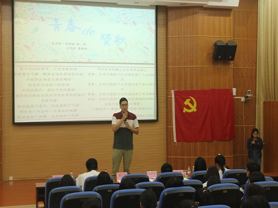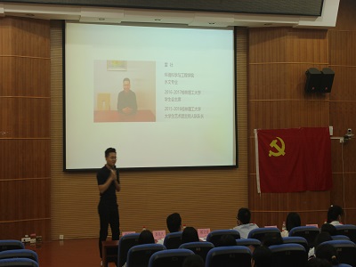 会上,优秀毕业生党员们给学弟学妹们分享自己在大学四年的心路历程,其中,雷壮便是其中之一,雷壮在大学期间曾担任大学生艺术团主持人队队长、桂林理工大学校学生会主席。在会上,他与同学们分享了他在大学四年的学习方式,以及担任学生干部的经历,讲述了他从大一的青涩到如今成熟的过程。