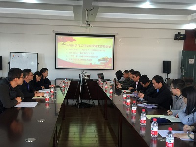 为深入学习贯彻习近平新时代中国特色社会主义思想和党的十九大精神,落实新时代党的建设总要求,推进全面从严治党向基层延伸,发挥党支部战斗堡垒作用,11月27日,我院在雁山校区萃华楼12407会议室召开2018年党建工作推进会。学院党委书记姜子亮、副书记郝文佳、在校领导班子、党委委员以及全体党支部书记参加本次会议,会议由学院党委书记姜子亮主持。