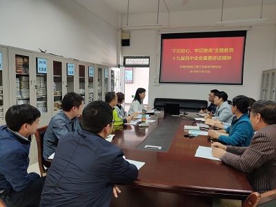 环境学院教工第三党支部11月12日下午,在雁山校区12栋12414学习贯彻党的十九届四中全会重要精神。支部书记覃礼堂同志主持会议,学院副院长李艳红参加本次学习。