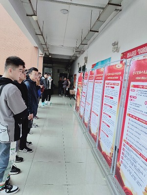 参观开始前,杨老师对全体党员说明了此次参观展板的重要性,要求在参观中多思考,身为预备党员下一步应该如何跟党走,并在参观后写一篇观后感。期间,全体党员认真观摩学习展板,对十九届五中全会精神有了更深的理解,并交流了参观心得。