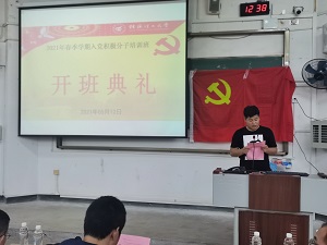 姜子亮书记在开班典礼后作了首场讲课,勉励广大积极分子要深入学习贯彻习近平新时代中国特色社会主义思想,要充分认识学习培训的重要意义,切实把握方式方法,注重抓好成果转化,集中精力、专心学习,深入思考、学以致用,严肃纪律、确保质量,通过学习进一步提高政治自觉和政治站位,把培训中学到的经验和方法转化为前进的动力。