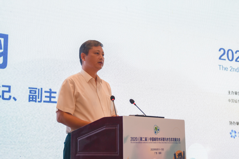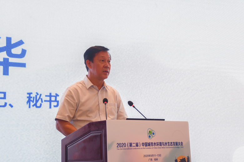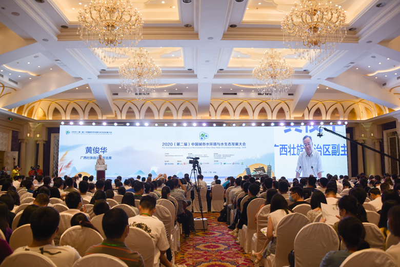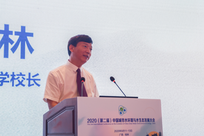 金秋九月,丹桂飘香,八桂大地,智者云集。9月12日上午,2020(第二届)中国城市水环境与水生态发展大会在桂林顺利开幕。广西壮族自治区人民政府副主席黄俊华,中国工程院院士、中国城市科学研究会水环境与水生态分会会长、我校名誉校长曲久辉,中国科学院院士袁道先,中国工程院院士彭永臻、徐祖信、任洪强,自治区人民政府副秘书长唐宁,自治区科技厅党组书记、厅长曹坤华,广西科学技术协会党组书记、副主席纳翔,自治区教育厅副厅长李清先,桂林市委副书记、秘书长赵仲华,我校校长解庆林、副校长王敦球等领导和嘉宾出席开幕式。来自政府有关部门、水分会委员代表、团体会员单位代表、个人会员代表以及全国各地从事水务工作的专家、学者、工程技术人员及企业家等参加大会。会议由中国城市科学研究会第六届理事会秘书长、水分会副会长兼秘书长、清华大学环境学院教授余刚主持。
