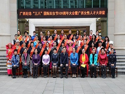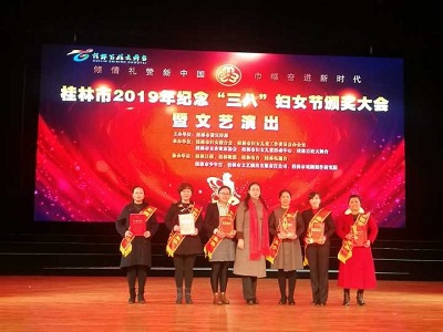 3月4日,自治区妇联在广西人民会堂举行“倾情礼赞新中国 巾帼奋进新时代”广西纪念“三八”国际妇女节109周年大会暨广西女性人才大讲堂活动,对“三八红旗集体”和“三八红旗手”进行了通报表彰,全国妇联授予环境科学与工程学院水环境保护与水资源利用教学科研巾帼攻坚组“全国三八红旗集体”荣誉称号。广西仅6个单位获此殊荣,也是桂林市唯一获此殊荣的集体。