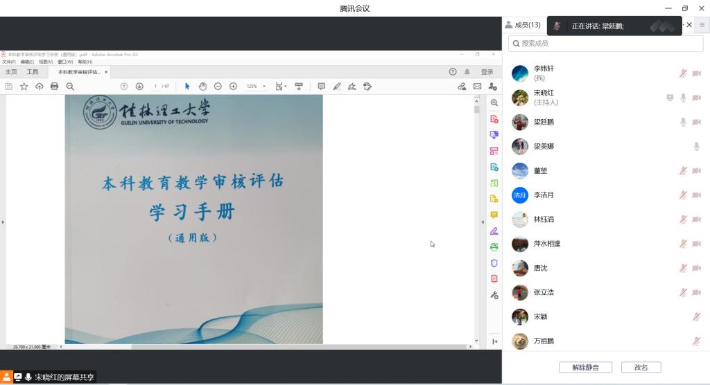 为认真学习习近平总书记关于教育的重要论述,根据学校和学院本科教育教学审核评估工作要求,12月30日上午,我院环境工程中心实验室在线上组织开展本科教学审核评估学习,本次学习由环境工程中心实验室主任梁延鹏主持,环境工程中心实验室全体教师参加了此次学习。