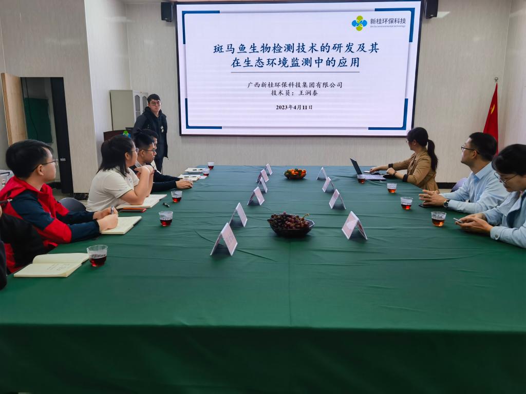 会上、广西新桂环保科技集团介绍了他们公司建成的集基因工程斑马鱼研发、繁育、生产和产业应用的国内先进的斑马鱼技术平台。并通过PPT展示介绍了他们借助国际领先的斑马鱼生物检测技术、基因编辑技术,开发的包含转基因斑马鱼和基因突变斑马鱼的基因工程斑马鱼品系100余种,并成功将斑马鱼生物检测技术应用于环境检测、农产品检测、化妆品和保健食品检测、中药材检测等产业应用场景,服务区域社会经济的高质量和绿色发展,为八桂大地青山常在、清水长流、空气常新保驾护航。同时我院环境工程中心实验室副主任宋晓红高级实验师就模式鱼种对环境中污染物的应激方面做了相关的报告,与新桂环保科技集团进行了深层次的科研交流。